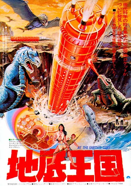 There's more than lava at the Earth's core. There's also Pellucidar: an underground empire where gargantuan pterodactyls torture and enslave all humanoids - including the lovely Dia (Munro). But all that could change when a surface-dwelling scientist (Cushing) and an American businessman (McClure) drive their powerful "Iron Mole" straight into Pellucidar...stirring up a great deal more than dirt, rocks and lava!Sounds like an essential purchase! Here's hoping that this does well, so that Kino might also score the rights to Warlords Of Atlantis (which still doesn't have an authorized U.S. release) and the Time Forgot flicks.